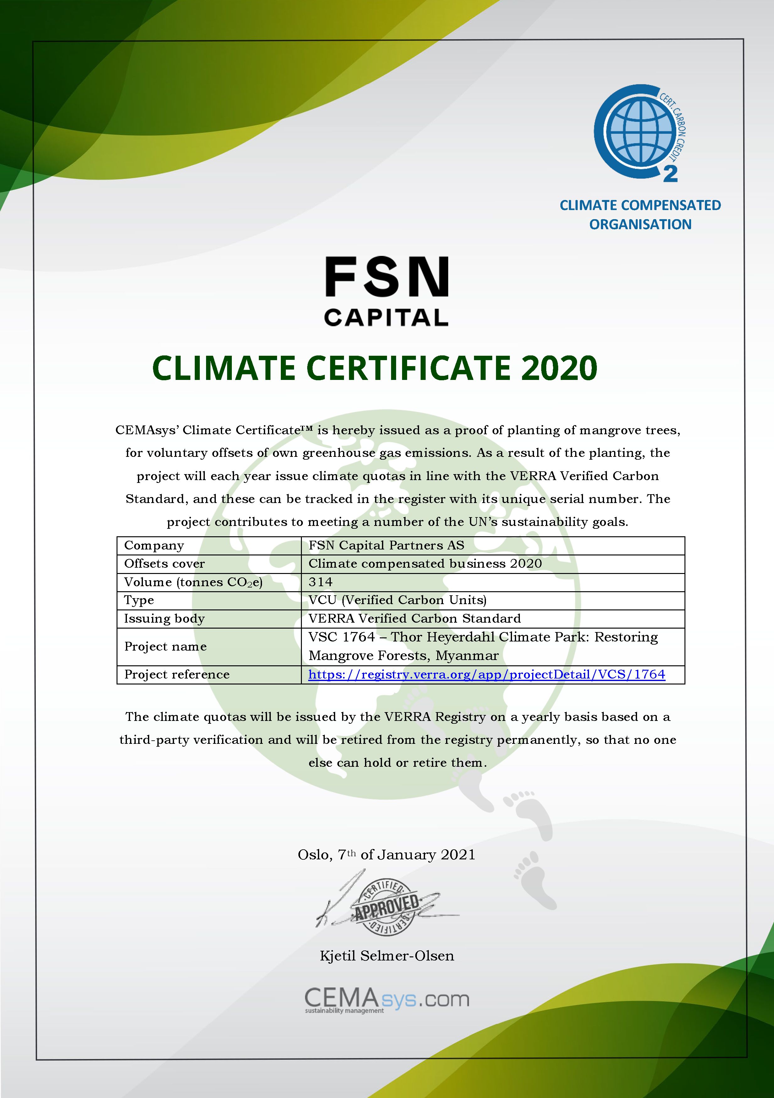 CO2-Bilanz von FSN Capital und Klimakompensation
